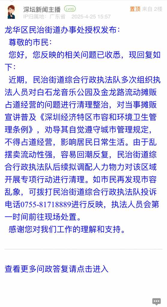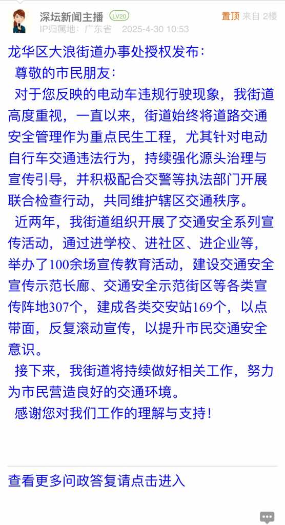 各職能單位如需對網友反映的問題進行回應,可在深圳論壇注冊官方賬號并通過認證,回帖進行回應。