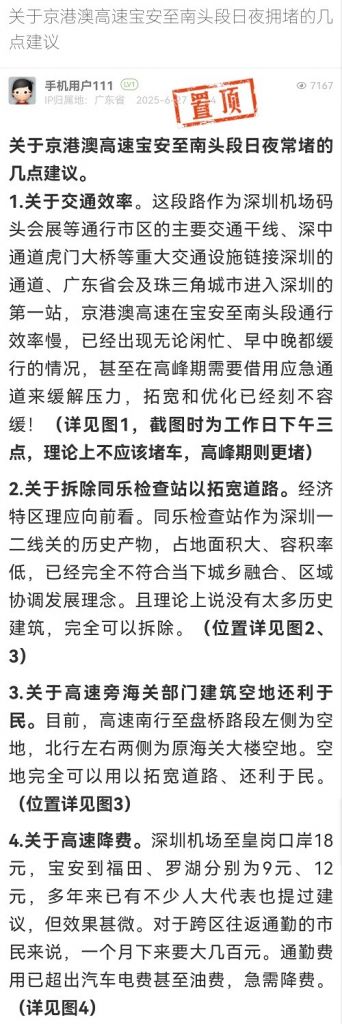 您好!經我單位向建設單位廣深珠高速公路公司了解,您提的工程建議方案已納入了正在推進的京港澳高速深圳段改擴建工程可行性方案中。高速公路通行費收費標準及政策由省一級部門核準,目前廣深高速按照《廣東省全面推廣高速公路差異化收費實施方案》(粵交〔2025〕4號)要求,已對使用ETC支付通行費的合法裝載貨車實行通行費85折收費,暫無對其他車型實施優惠收費政策的計劃。感謝您對深圳交通運輸工作的支持和理解!