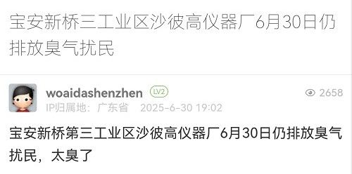 經查,被投訴對象為沙彼高儀器(深圳)有限公司,位于深圳市寶安區新橋街道新橋社區新橋洋下三路2號A棟一層至六層及BCDE棟,持有營業執照,主要生產香薰制品,主要工藝為注塑、香精灌裝,已配套建設廢氣處理設施。收悉輿情后我局立即安排執法人員赴現場開展調查。現場檢查時,該企業正常生產,涉氣車間的廢氣收集處理設施正常運行,經使用廢氣快測儀器檢測結果均為達標。2025年4月至今,我局共出動64人次對沙彼高公司開展多次巡查排查,不定期對該企業廢氣、噪聲問題開展突擊檢查共32次,檢查時,該企業已按要求落實污染治理,經使用廢氣、噪聲快測儀器檢測結果均符合國家標準。我局已于2025年4月至今走訪周邊商鋪及居民30余戶,居民均表示未發現異味。同時,我局通過走訪、投訴回復等渠道已公開新橋所值班電話,并與芙景豪庭物業建立微信溝通群,截至今日尚未收到有關居民投訴。若后續有環保問題反映,可第一時間與我局聯系,新橋環保所現場值班電話:18138298220(微信同號)。下一步,我局將加強對該企業及其周邊的日常監督管理,爭取盡快解決相關問題。